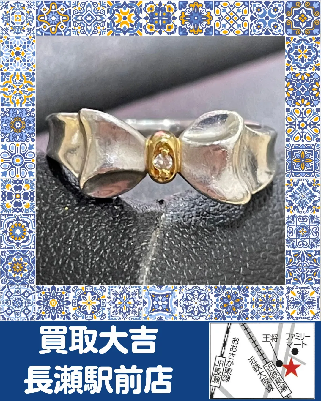 【貴金属】K18・PTコンビリング【買取実績】 【貴金属】K18・PTコンビリング【買取実績】こんにちは、買取大吉長瀬駅前店です!PTのリボンの中心に、金とダイヤがかわいらしいリングをお買取いたしました!リボンモチーフはいくつになってもかわいい…