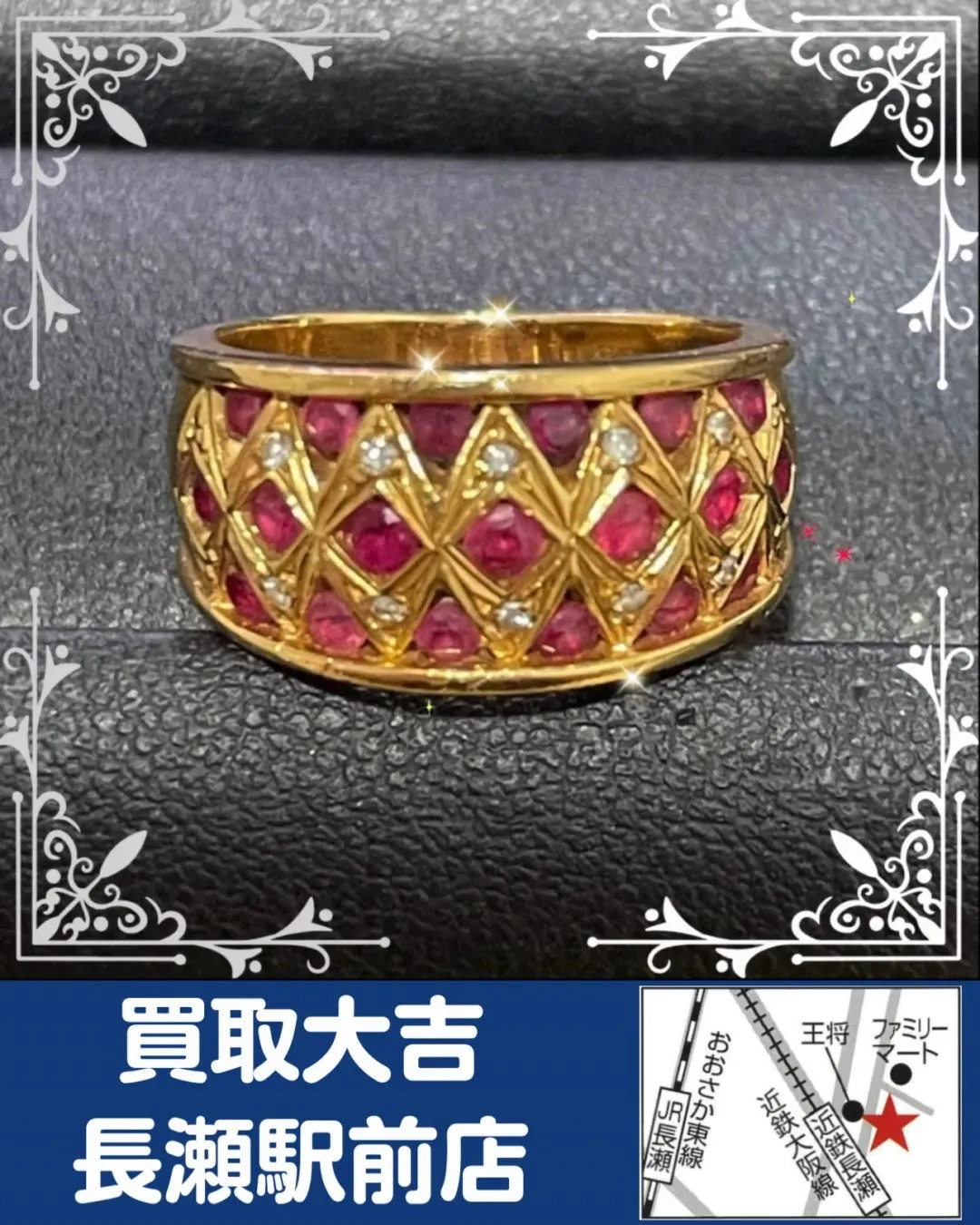 【貴金属】K18 ルビー・ダイヤリング【買取実績】 【貴金属】K18ルビー・ダイヤリング【買取実績】こんにちは、買取大吉長瀬駅前店です!K18のリングをお買取させて頂きました!ルビーとダイヤがゴージャス!もちろん、金の重量自体もゴージャス!!それ…
