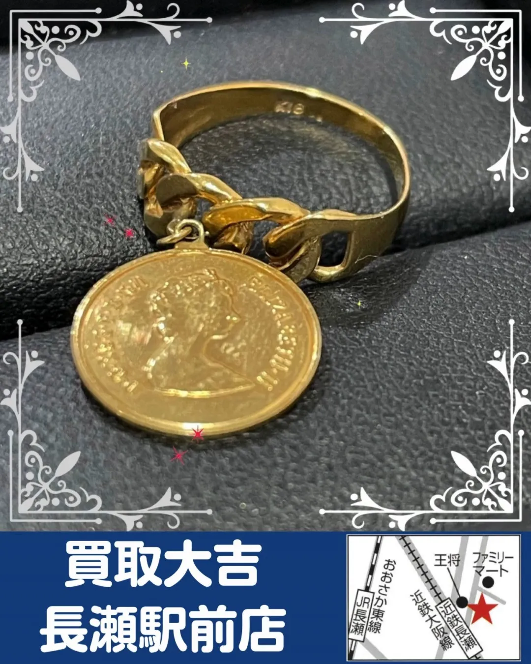 【貴金属】K18 リング【買取実績】 【貴金属】K18リング【買取実績】こんにちは、買取大吉長瀬駅前店です!コインがついたリングをお買取いたしました!コインってペンダントトップになっているイメージですが、たま~にリングになってたり…